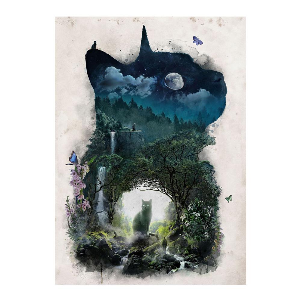 Царство кошек Птица Волк Картина на холсте День или ночь Пейзаж и постеры с животными Печать Настенные художественные фотографии Идеальное украшение для гостиной Домашнее украшение Куадрос 20x30cm