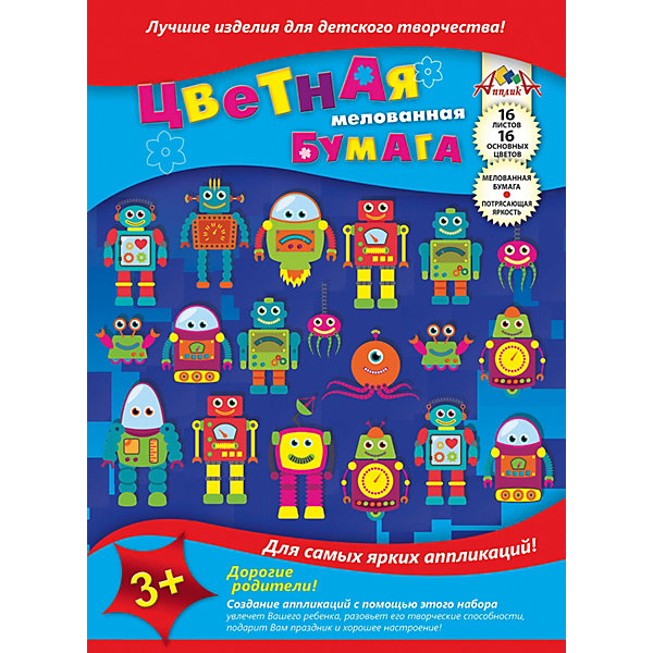 Цветная мелованная бумага Апплика "Роботы", 16 листов