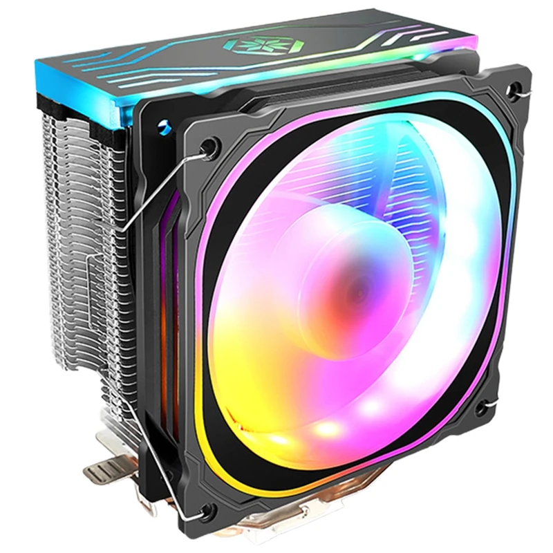 Цветная (RGB) светодиодный Процессор охлаждающий вентилятор 4 теплотрубки охладитель 12V 120 мм охлаждающий вентилятор радиатора для LAG1155 1156 1366 ...