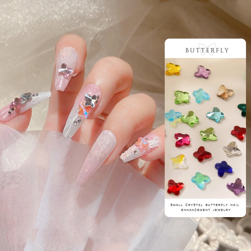 Цветные с плоским дном хрустальные бабочки украшения для дизайна ногтей милые стразы аксессуары для маникюра оптовая продажа Прямая поста...