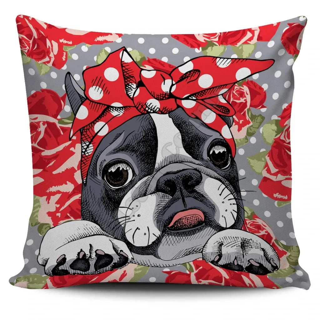 Цветочная красная наволочка Boston Terrier, наволочки с 3D рисунком, наволочки для украшения дома, 10 стилей
