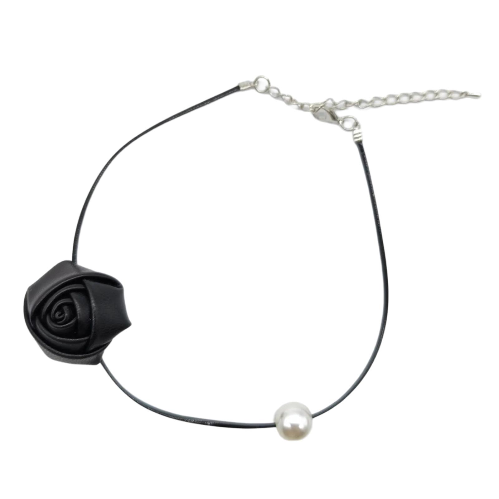 Цветочное ожерелье, ошейник в виде розы, регулируемый воротник, изящное ожерелье-чокер, модная цепочка на ключицу, подарок для женщин и девочек чёрный