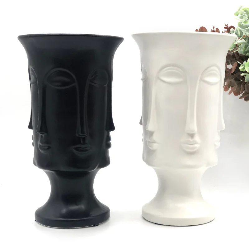 Цветочный горшок для лица, скандинавский керамический матовый цветочный горшок с золотым лицом, креативное простое украшение, многогранны...