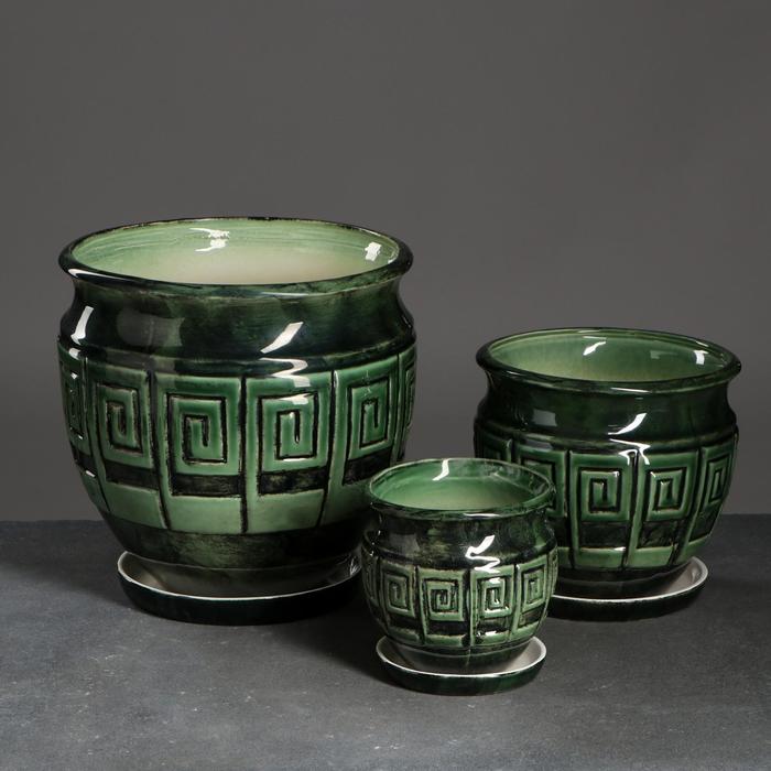 Набор горшков 3 шт. "Меандр" зеленый: 10л, 3л, 1,2л позаботится о зелёном питомце, освежит интерьер и подчеркнёт его стиль.