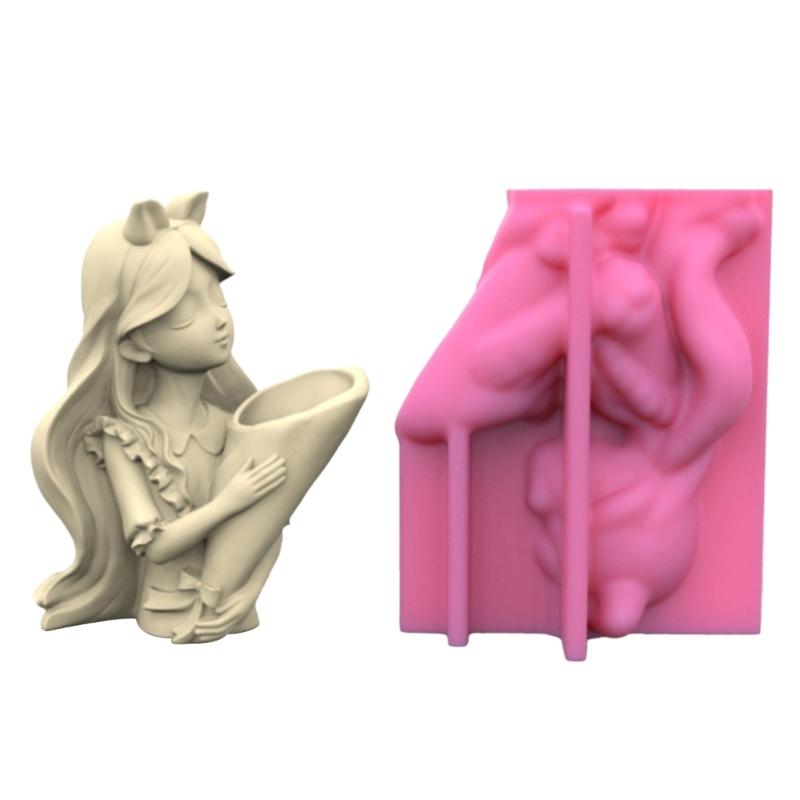 Цветочный горшок, силиконовая форма, ваза, форма для эпоксидной смолы, девушка держит цветы, сочный горшок для цветов, держатель для ручек, изготовление форм, поделки