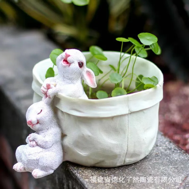 Цветочный горшок с кроликом для балкона, мясистый супер милый пустый садовый декор в скандинавском стиле, Креативные украшения