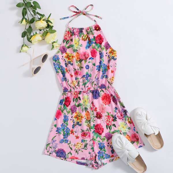 Цветочный комбинезон-халтер с узлом сзади, Многоцветный