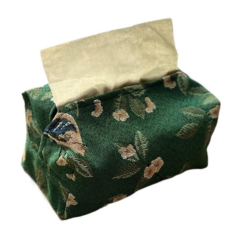 Цветочный узор Узор Тканевая сумка Приятная к коже Ретро Коробка для салфеток Прочная Настольная тканевая сумка Автомобиль зелёный