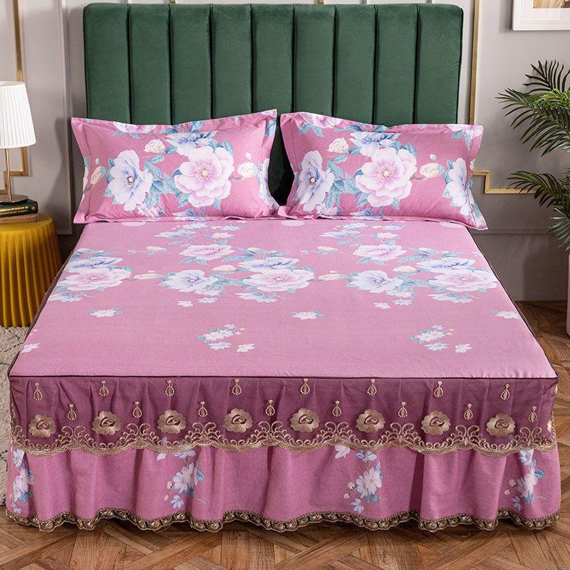 Цельная хлопковая юбка-кровать, 100% хлопковое покрывало, трехсекционная кружевная утолщенная простыня, наволочка с рюшами 1.2x2.0m