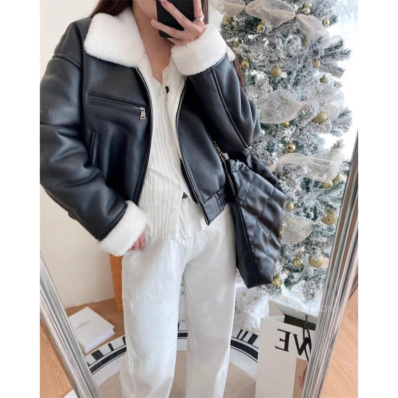 Цельное пальто из цельного куска овечьей шерсти с меховым отворотом для женщин L