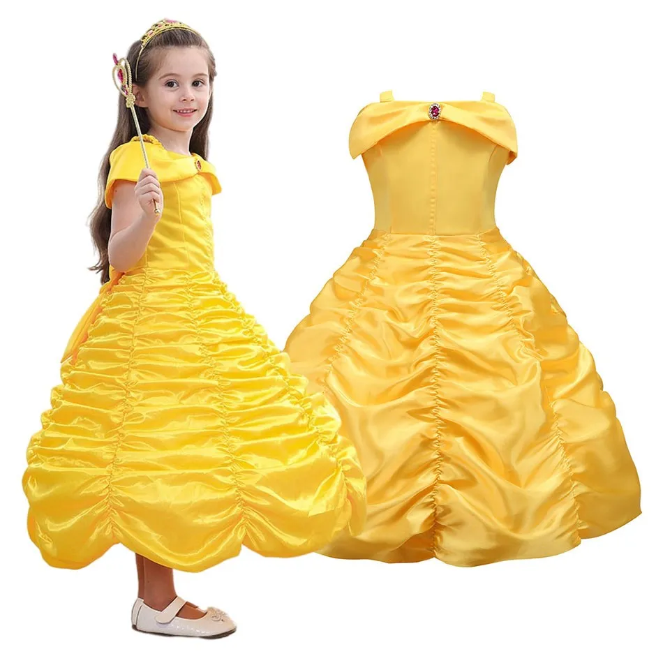 Цельнокроеное платье принцессы Белль на день рождения, модный костюм для косплея, детские костюмы на Хэллоуин, одежда, платье-пачка с единорогом