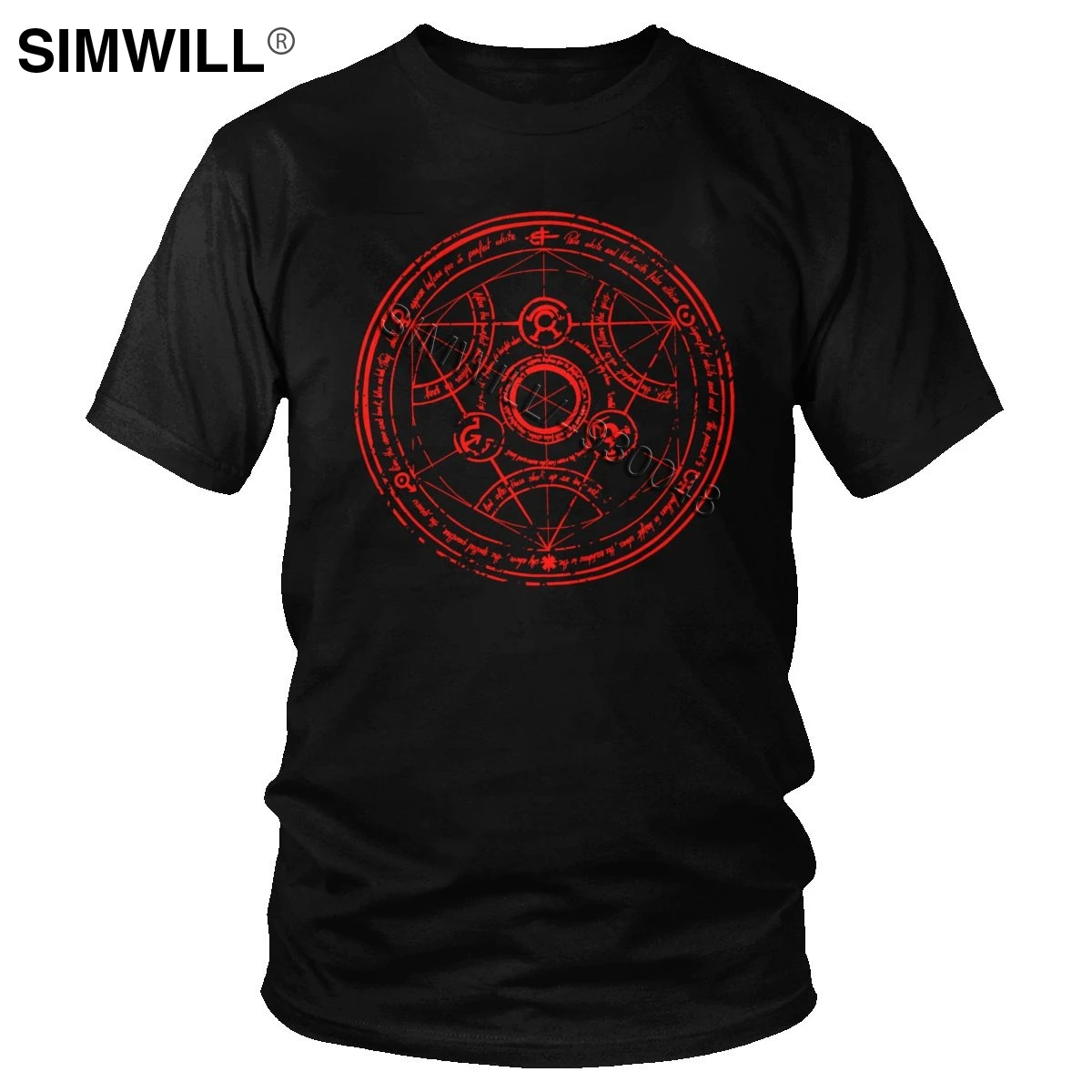 Цельнометаллическая футболка с изображением алхимика, Мужская хлопковая футболка с изображением братства манги, аниме футболка с коротким...