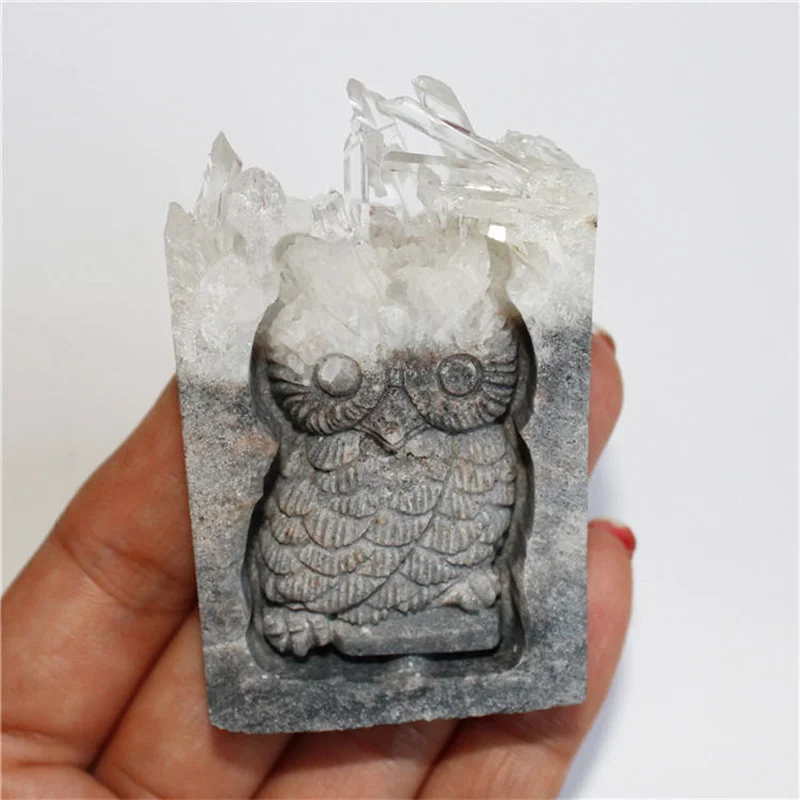 Цельный Натуральный Прозрачный кристаллический кластер резьба Сова ремесло для домашнего декора