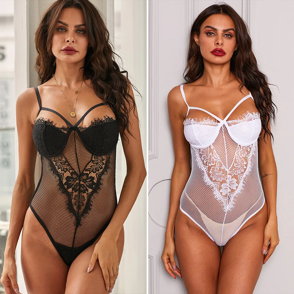 Цельный пижамный комплект, боди на подтяжках, кружевная сексуальная пижама, соблазнительная Удлиненная рубашка, пикантная атласная Шелков...
