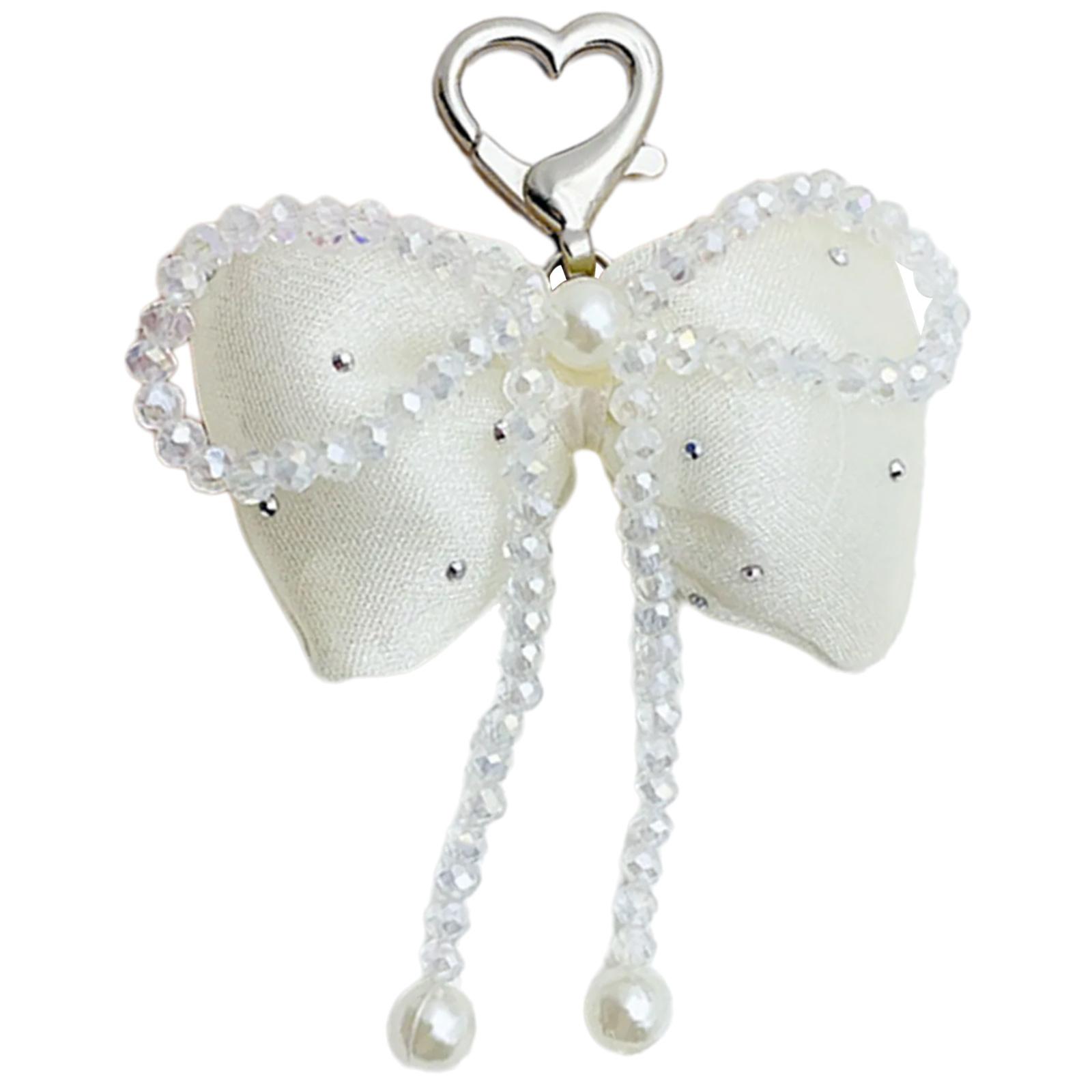 Цепочка для мобильного телефона с кристаллами и бусинами, разноцветный бант, брелок для ключей, разноцветная бабочка, украшение для школьного ранца белый