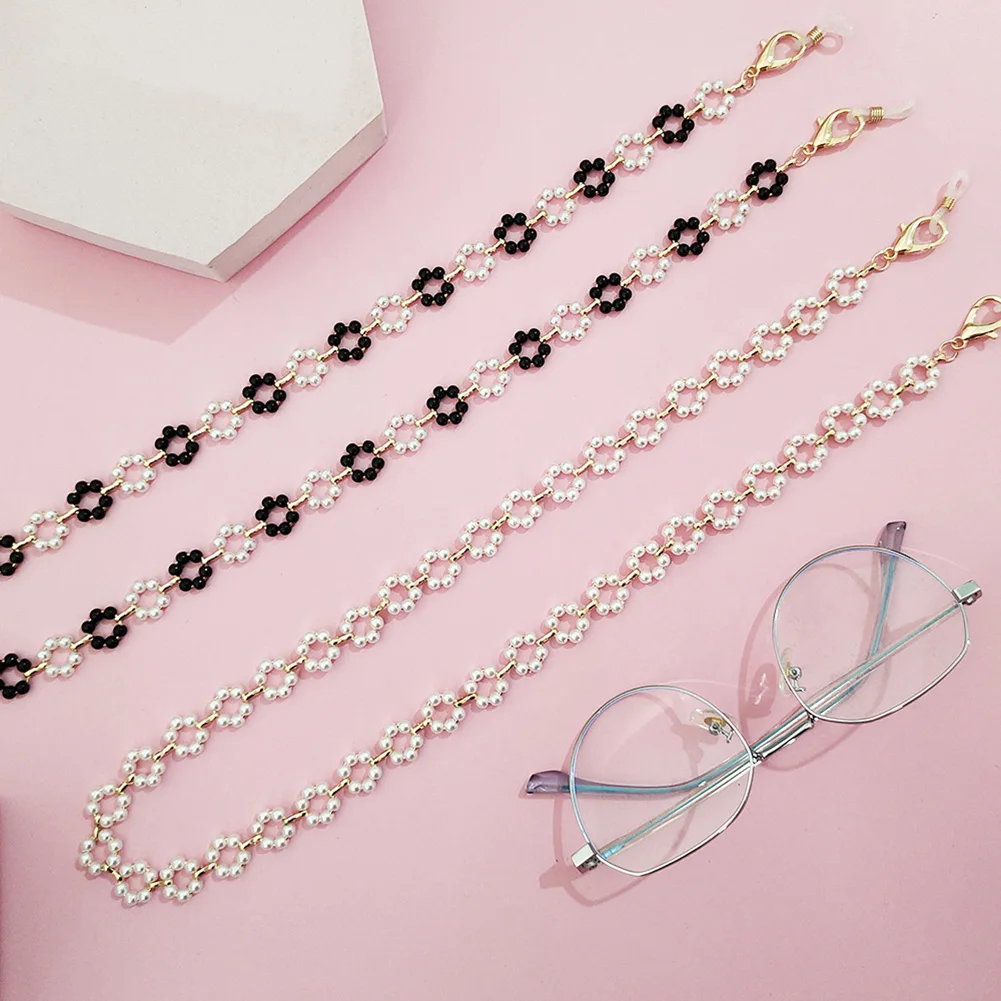 Цепочка для очков женская с жемчугом, модный металлический шнур в ретро стиле, цепочка для очков, ремешок на шею с цветком Модный