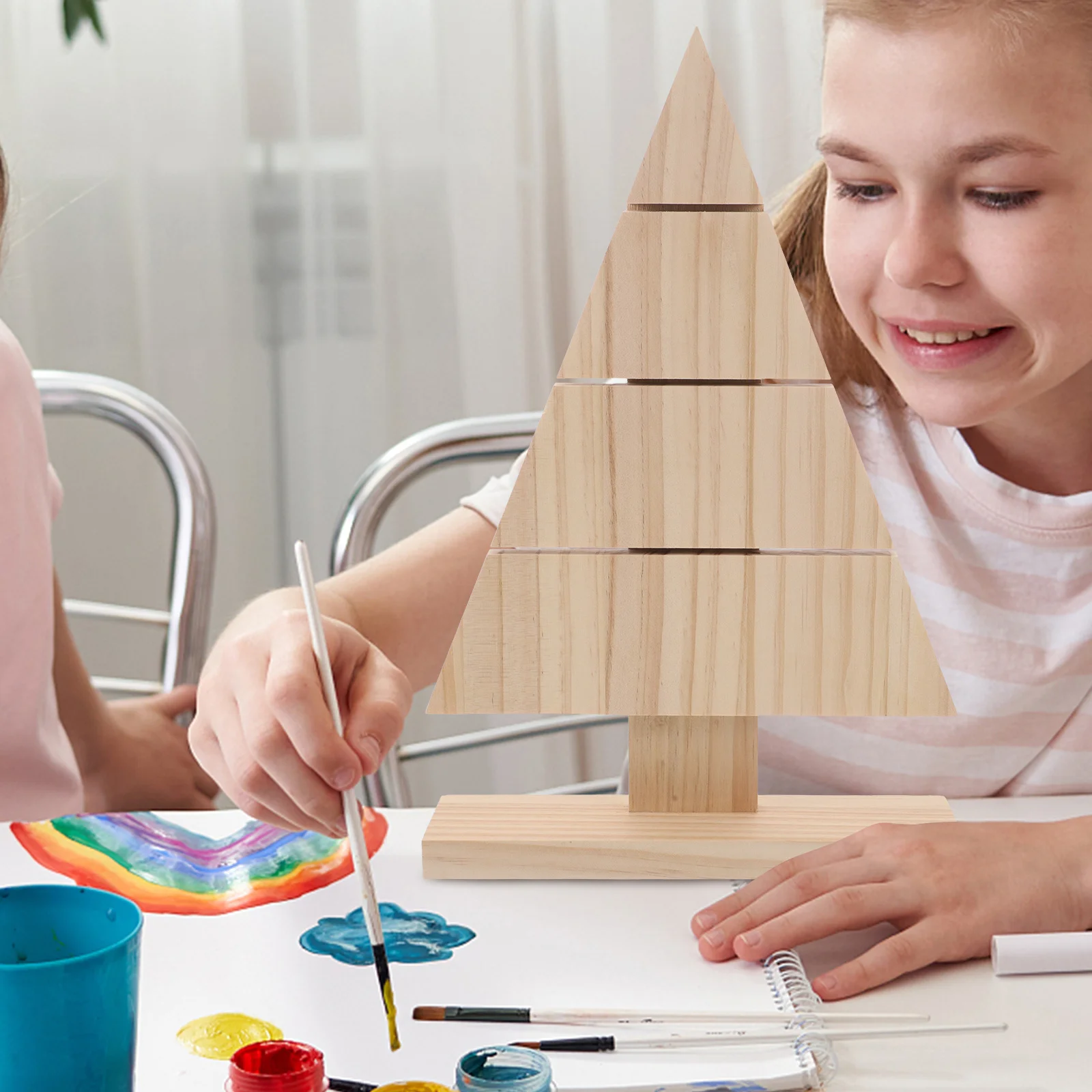 Rustic Unpainted Wood Xmas Tree Stand DIY Farmhouse Christmas Tabletop Decoration Wooden Sign Wood Tree Cutout