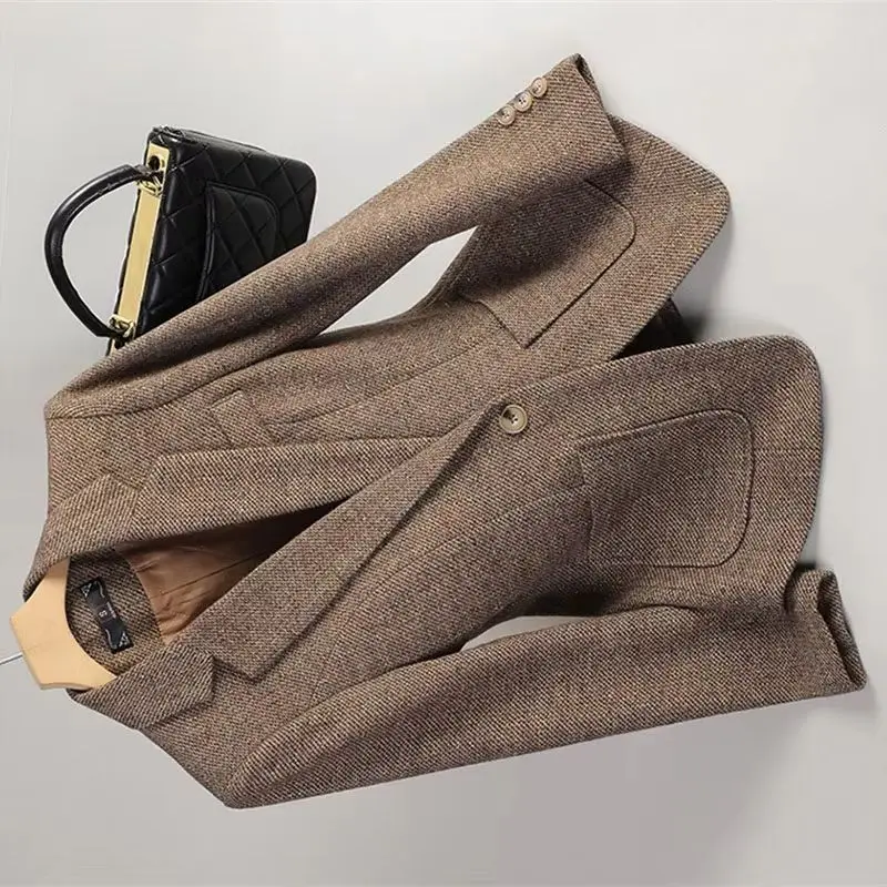 2025 Новый высококачественный осенне-зимний женский пиджак с длинным рукавом, шерстяной пиджак, пальто, женский офисный пиджак, женская плотная верхняя одежда