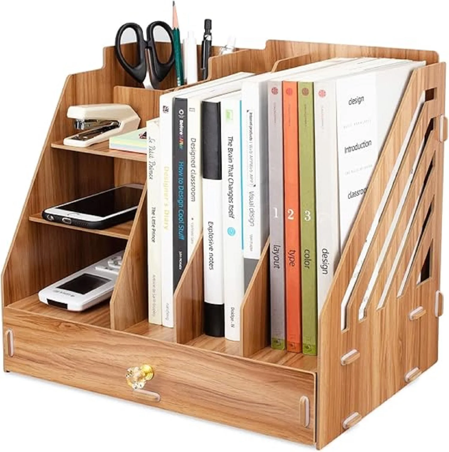 Makeasy Wooden Stationery Office Desk Tidy Storage Organiser Holder Sorter for A4 Papers, Books, Pens, and Notebooks