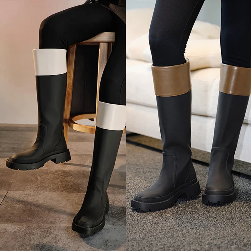 Женские сапоги до колена LEOSOXS, зимние теплые сапоги на платформе и среднем каблуке, дизайнерские мотоциклетные сапоги в британском стиле, гл...