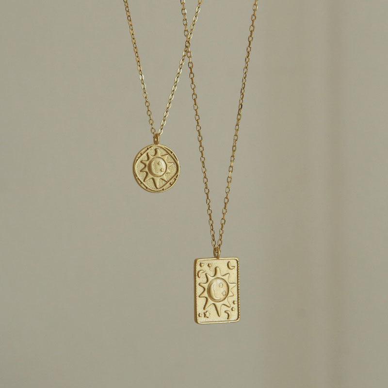 Цепочка на ключицу из стерлингового серебра S925. Жизнь полна солнечного света. Солнечная монета. Круглая карта. Квадратное ожерелье.