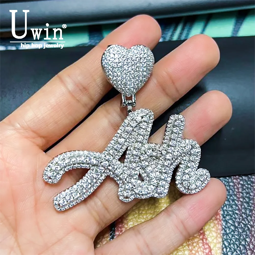 Цепочка с кулоном Uwin, ожерелье с кубическим цирконием в форме сердца, с именем, украшение в стиле хип-хоп