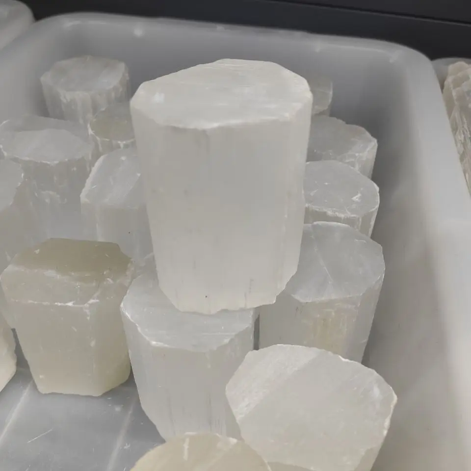 Цилиндрическая палочка из натурального белого селенита, исцеляющая палочка, образец гипсового камня шероховатый минеральный, 1 шт.