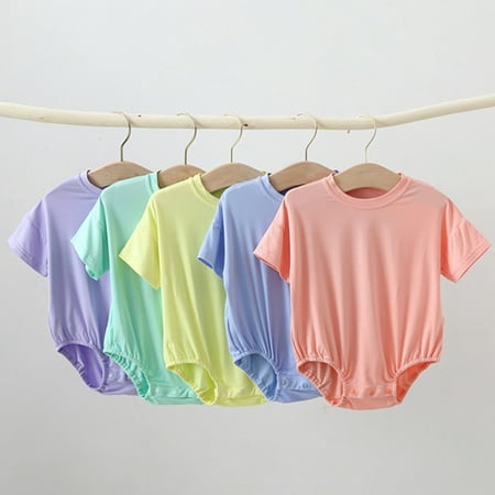 Archer Baby Pajamas Solid Color Skin Friendly Breathable Infant Short Sleeve Romper for Summer