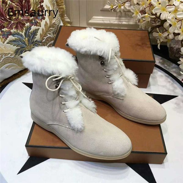 lace-up wool fur snow boots woman round toe flat heel suede autumn winter ankle boots women cozy runway shoes woman, Black