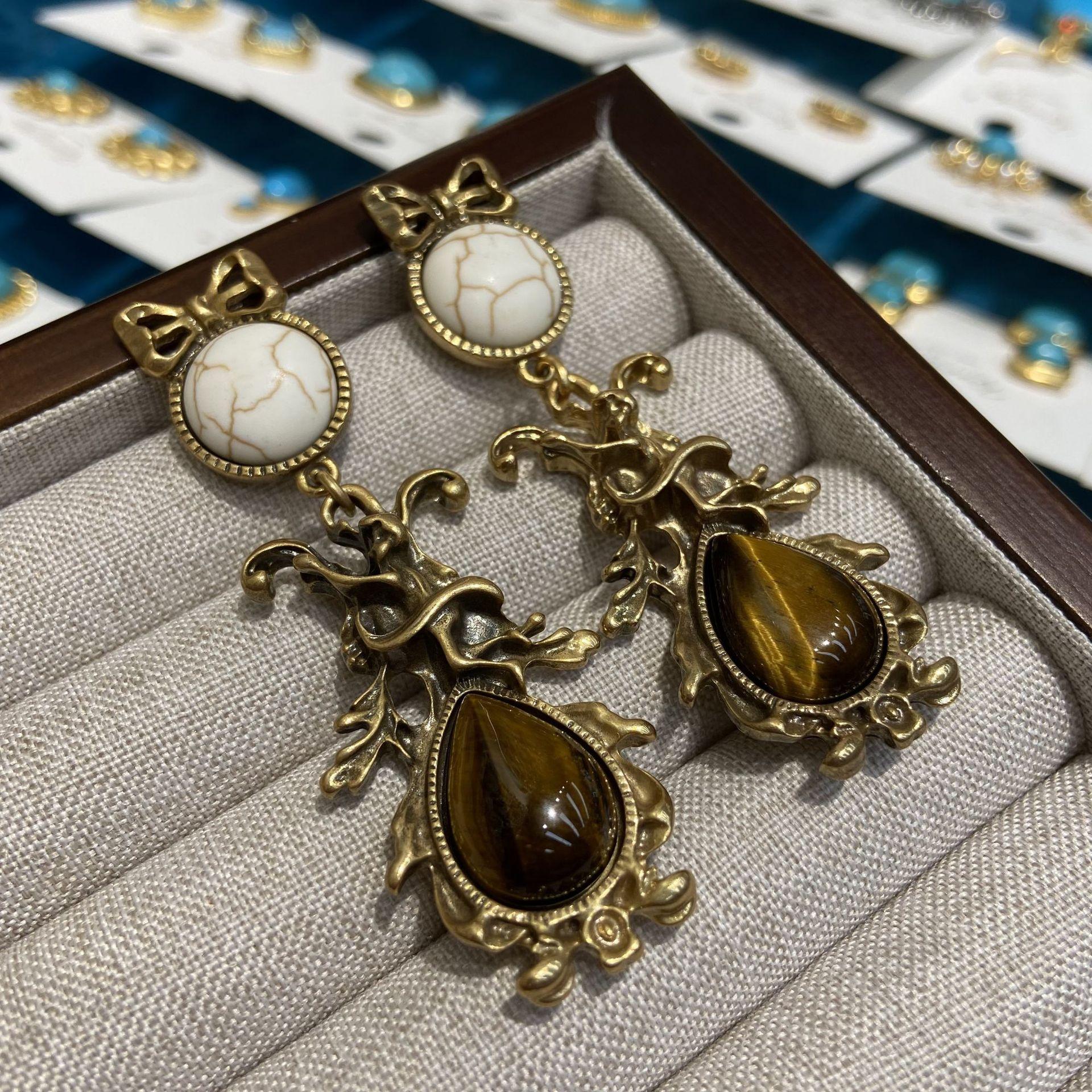 Циндао Западный антикварные белые бирюзовые серьги ретро металл тяжелая промышленность старые серьги с бантом ювелирные изделия