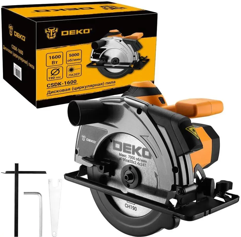 Циркулярная пила Deko CSDK-1600, 1.6 кВт, 5000 об/мин, диаметр диска 19 см (085-1151), CSDK-1600