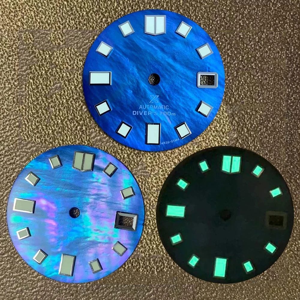 Циферблат для часов NH35, синий циферблат 28,5 мм, для автоматического механического механизма, зеленые циферблаты для часов C3, циферблат с календарем, запчасти NH35