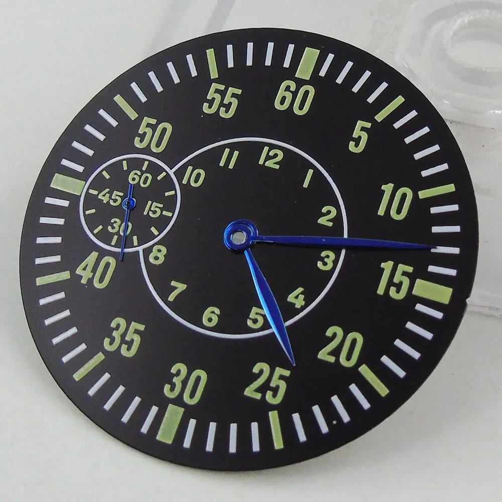 Циферблат наручных часов с зелеными цифрами, 38,9 мм + синяя флейта 6497 ST 3600, Циферблат наручных часов с циферблатом
