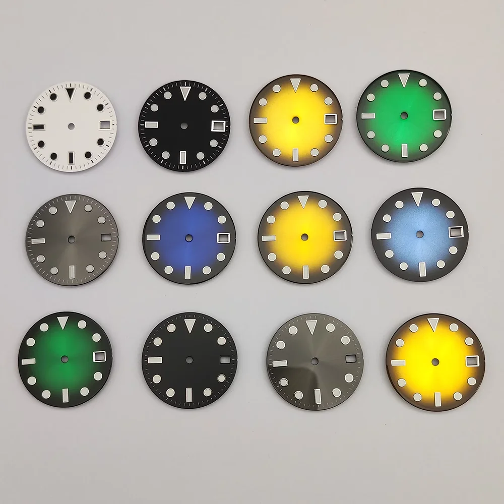 Циферблат часов 28,5 мм буквально применим к поверхности движения NH35A, синие и зеленые модифицированные светящиеся аксессуары