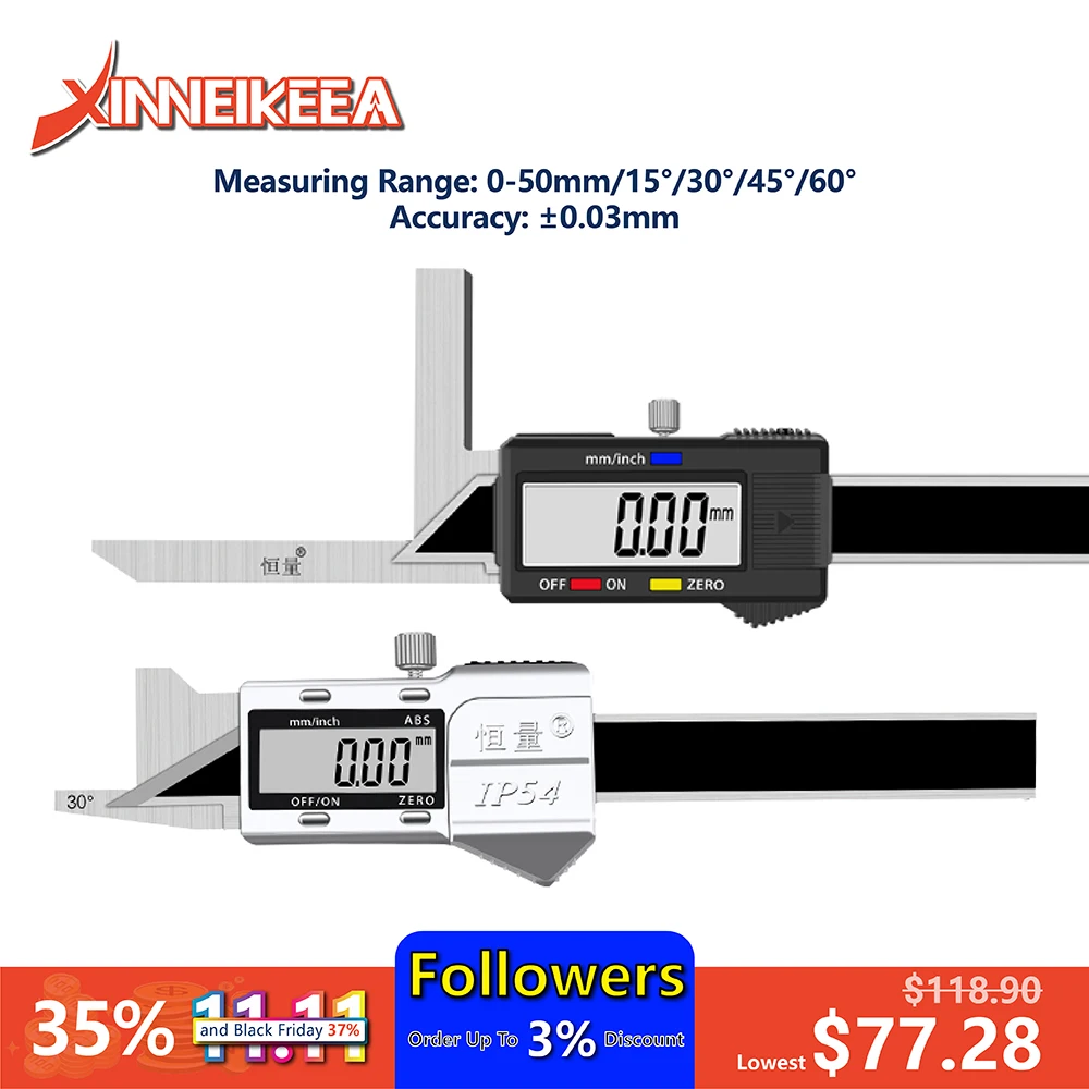 Цифровая линейка для снятия фаски, электронный измеритель, диапазон измерения 0-50 мм, 15 °, 30 °, 45 °, 60 °