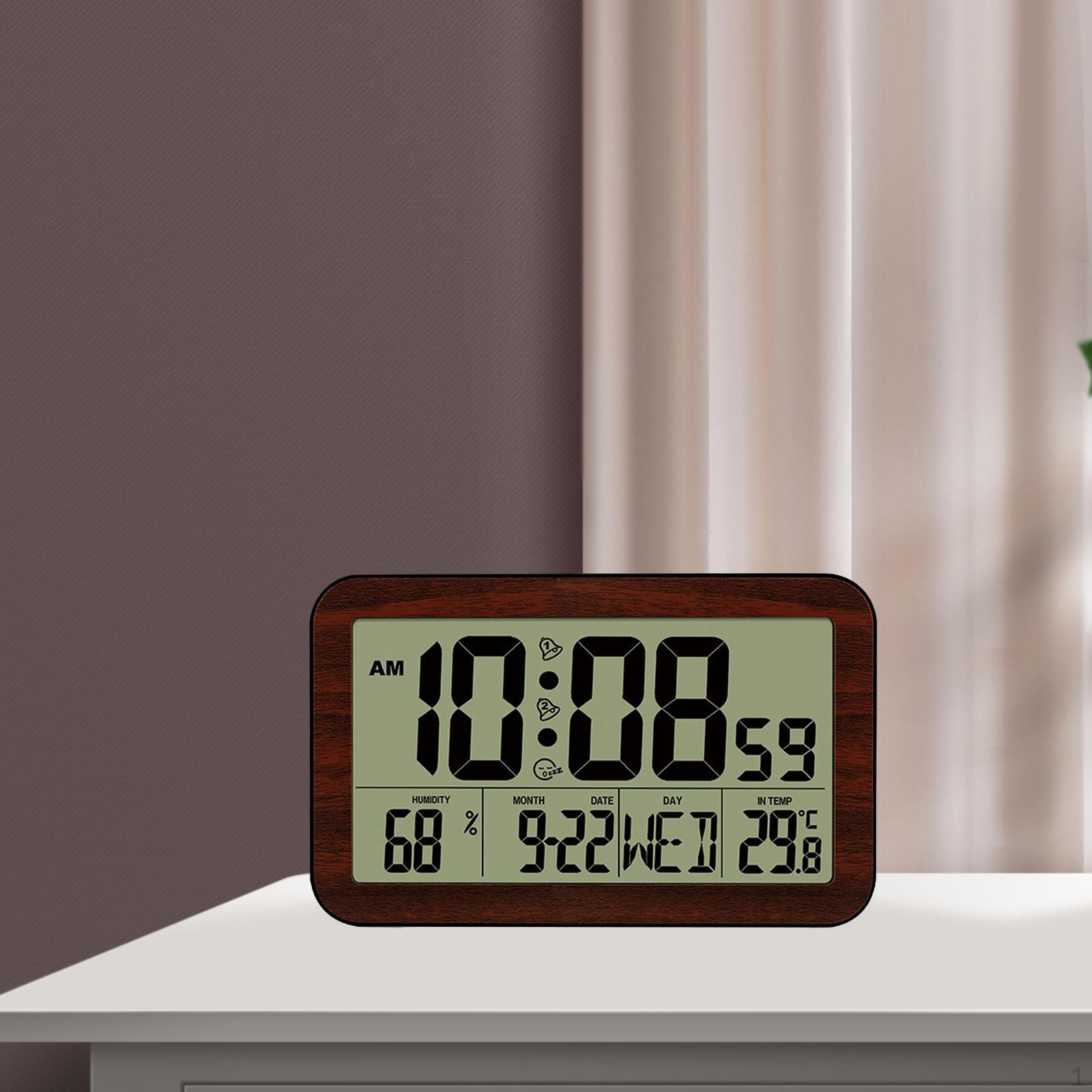 Цифровая функция повтора с батарейным питанием. Большой ЖК-дисплей для прикроватного офиса и дома. Wooden Dark_20.1x12.4x2.6cm