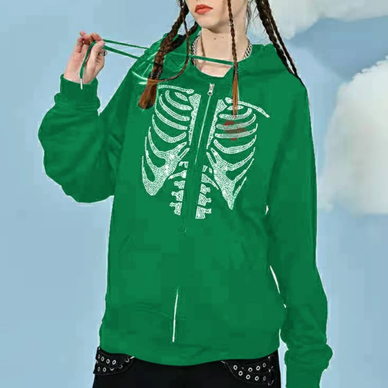 Ladies Sweater Zipper Hooded Loose Love Plus Bone Pattern Sweater 2021 Spring And Autumn New Casual Fashion Personality Simple