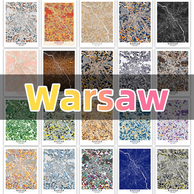 Poland Warsaw Colour Map Painting Canvas Painting Wall Art Pictures Home Decor Canvas Painting Can be custom