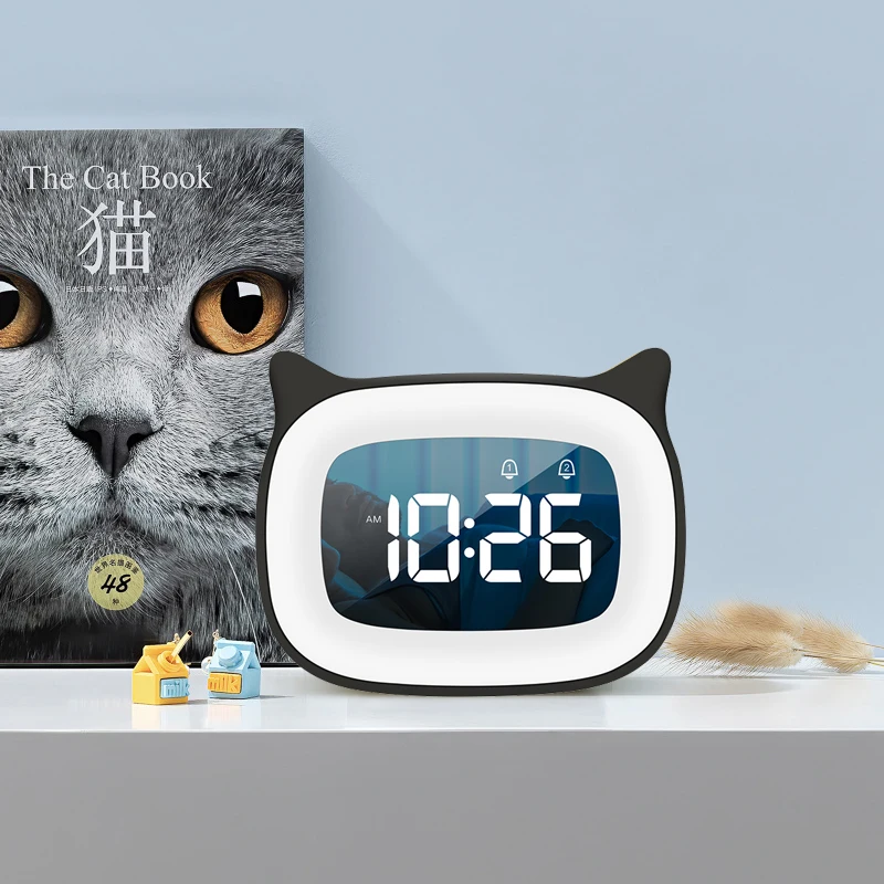 Цифровой будильник с музыкой, с голосовым управлением, настольные часы со встроенным аккумулятором 1200 мАч