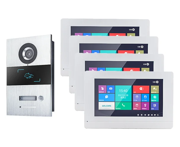 Цифровой видеодомофон TCP/IP, домашняя система безопасности, видеодомофон, 7-дюймовый сенсорный экран, 1v4