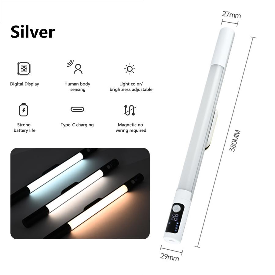Цифровой дисплей Датчик движения Светильник Ночной Светильник Настольная Лампа Тип C Перезаряжаемые Светильники Шкафчики Светильники Для Кухни Спальни Освещение Digital display белый