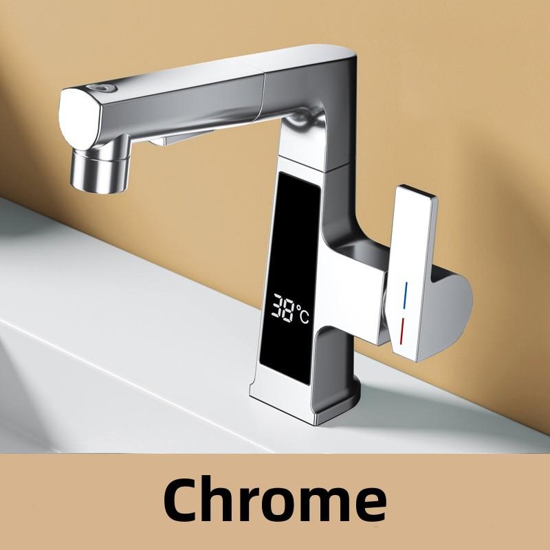 Цифровой дисплей, выдвижной кран для ванной комнаты, интеллектуальный датчик температуры, латунный кран для раковины, смеситель для мойки с холодной и горячей водой серебряный