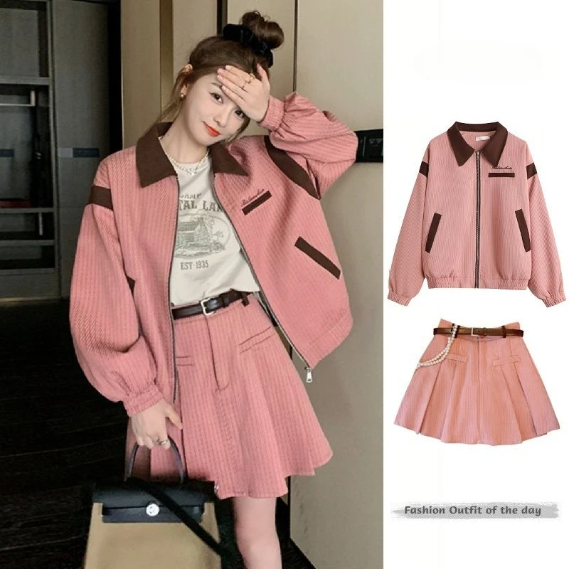 Корейский модный весенний комплект из 2 предметов для женщин и девочек, свободная повседневная куртка с длинным рукавом и короткая плиссированная юбка мини с высокой талией
