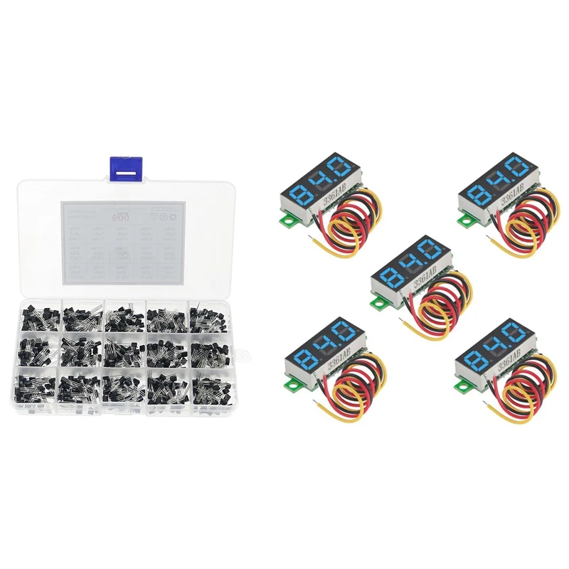 Цифровой мини-Вольтметр постоянного тока 0-100 в, тестер с тремя проводами и набор из 600 предметов TO-92 NPN PNP, 30-160 В, 50-Ма, NPN/PNP, 5 шт.
