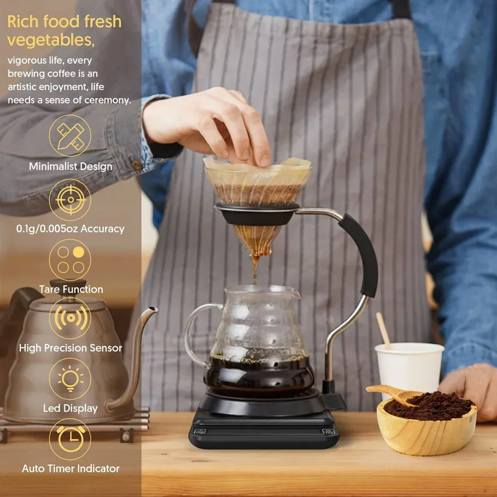 Цифровые точные кухонные весы, 3 кг/0,1 г, таймер для кофе, Многофункциональные весы для эспрессо, весы для кофе