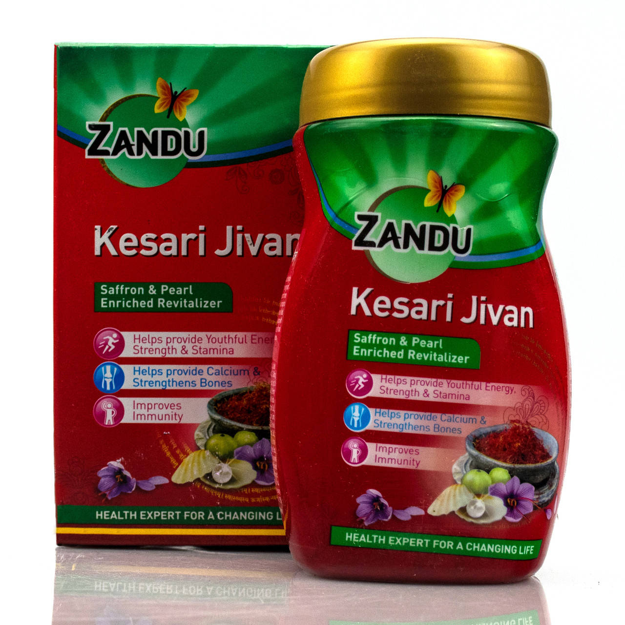Чаванпраш Кесари Живан - Средство для тонизации всего организма и повышения бодрости. Помогает защитить себя и близких в сезон простуд, а также восстановиться после нагрузок. Оздоравливает все ткани организма, отлично поддерживает иммунитет, улучшает настроение, насыщает организм большинством необходимых ему витаминов. Имеет приятный вкус, который понравится и детям и взрослым.