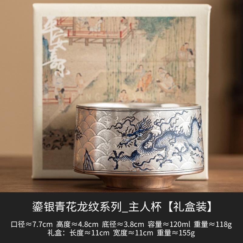 Чайная чашка из позолоченного серебра и синего дракона, большая емкость, для домашнего использования, керамический чайный набор в стиле кунг-фу, дегустационная чашка 120ml