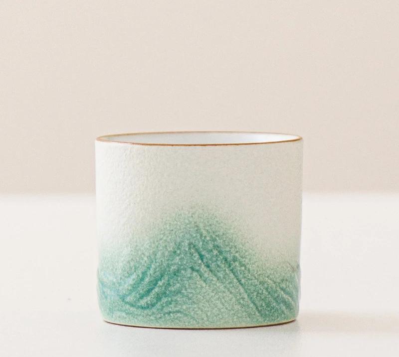 Чайная чашка Distant Mountain с 3D-рельефом, грубая керамическая маленькая чайная чашка, персональная чашка мастера, маленькая чашка в стиле кунг-фу зелёный