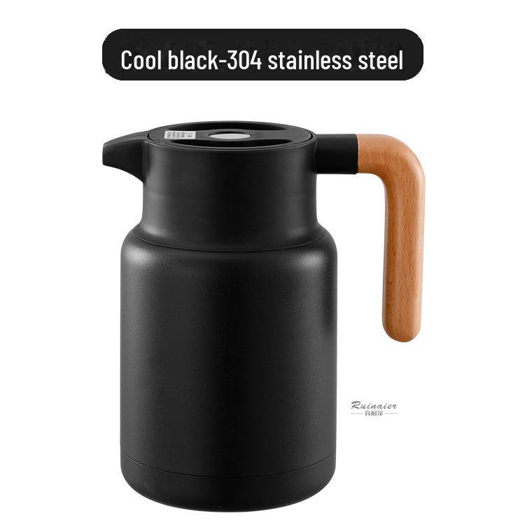 «Чайник европейского образца из нержавеющей стали 304 с вакуумной изоляцией и деревянной ручкой — двухслойный пылезащитный кофейник»