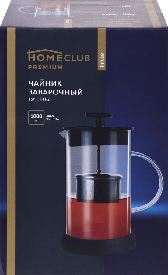Чайник заварочный HOMECLUB Infuse, стекло, нержавеющая сталь, 1л, Арт. KT-FP2